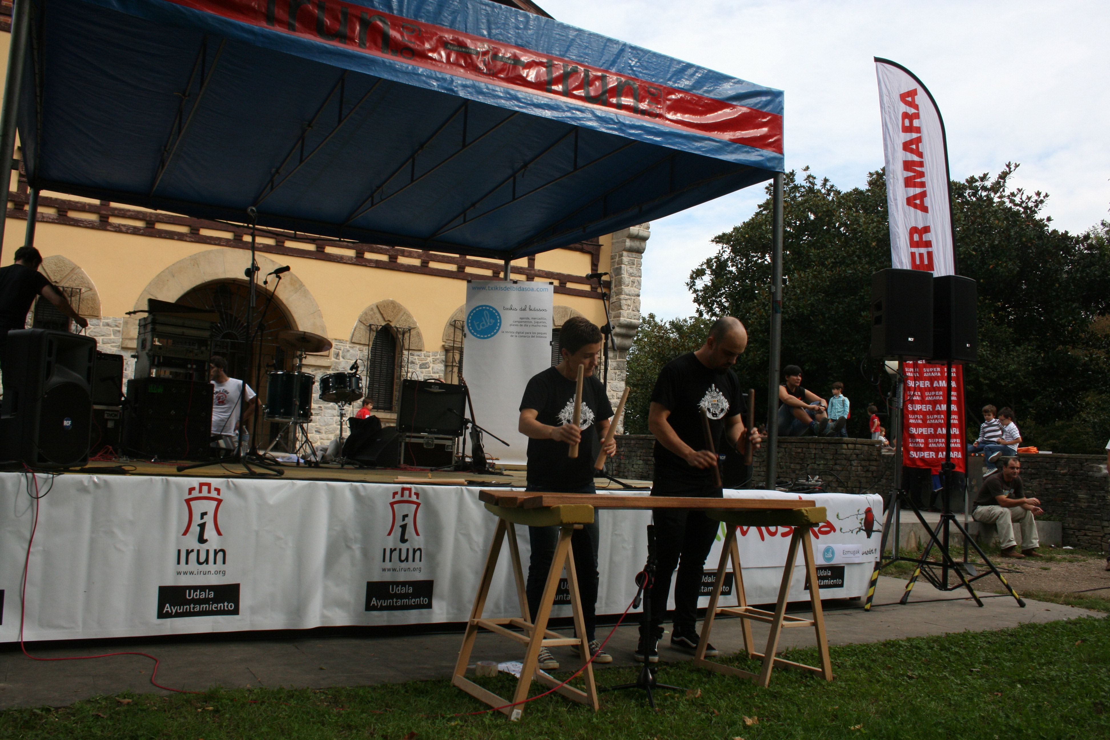 Tendremos conciertos musicales a partir de las 12h30. Nos acompañarán, por un lado MARACAS PARA DOS, un sorprendente grupo que se vale de los fundamentos del Jazz y el Funk para crear atmósferas musicales increíbles. Saxo, Flauta, Batería, Percusión, Voz, Teclado y nuestro imprescindible amigo Mr. Boss con sus multiefectos!! y por otro lado, PATXUKO NICE, la banda de Bidasoaldea Patxuko Nice presentará su nuevo trabajo «435.0» en Txikimusika. El proyecto más personal del irundarra Sergio Ordóñez agita rock, ska, indie y cumbia, en euskera y castellano, en su coctelera musical. Sergio ha pisado cientos de escenarios con sus bandas anteriores: Joxe Ripiau, The Solanos y Esne Beltza, siempre con el ánimo de hacer bailar y prolongar la fiesta.