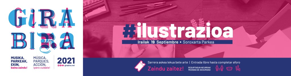 En esta ocasión estrenamos nueva temática, ‘ Ilustrazioa ‘. Aunque no podremos retomar el pícnic en el parque, sí podremos disfrutar de cuatro talleres, de una muestra de ilustradores y de un concierto en directo.