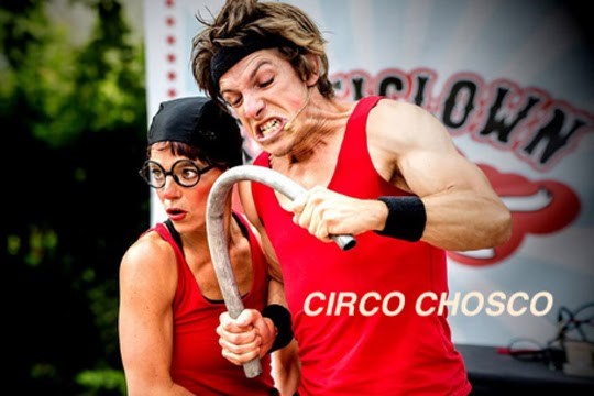 El humor y el absurdo son los hilos que tejen la trama de un espectáculo de un dúo de atletas, cómplices que se compenetran realizando trucos imposibles delante del público. Riesgo, desastre, sorpresa y surrealismo se cruzan con la impecable técnica en forma de portés, acrobacias aéreas, malabares imposibles y fuego. Siempre en formato de clown, Circo Chosco realiza sus impresionantes números escondiéndose bajo la apariencia de superacróbatas, de grandes magos o de malabaristas matemáticamente perfectos.